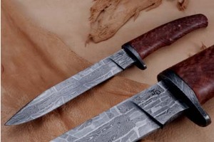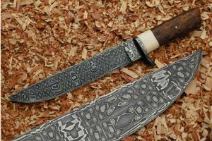 For using blades, John hardens ATS34, 440C, and 52100 to between a 58-59 Rockwell. He hardens 1084 and 15N20 Damascus to between 56 and 58 Rockwell, depending on the blade.