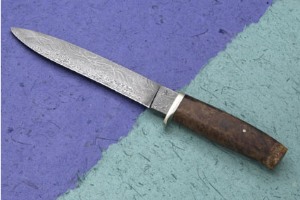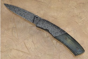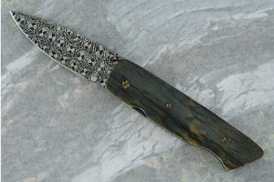 John specializes in making Damascus, and has moved into doing a lot of mosaic Damascus in the past couple years. Even though most of his knives are Damascus, ATS 34, 440C and 52100 still find a place in John's shop. He makes knives both for use and display.