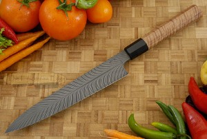 The blades are full flat ground for high performance, effortless slicing. They were heat treated by Peters' Heat Treating, for a superior, long lasting edge (Hrc 62-63).