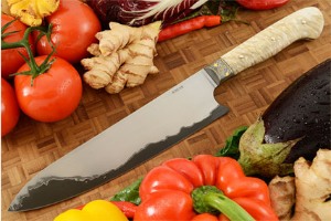 The blades are full flat ground for high performance, effortless slicing. They were heat treated by Peters' Heat Treating, for a superior, long lasting edge (Hrc 62-63).