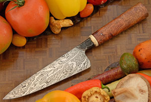 Damascus Chef's Knife (5-3/4 in.) with Thuya Burl and Mammoth Ivory |