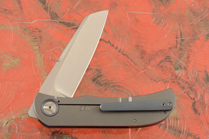 The EXK was originally developed by Trevor's father, Fred Burger in conjunction with Mike Skellern, and continues to be one of the most popular folders that he makes. The blade runs on ball bearings and has silky-smooth action. It is easily opened single-handed using the gent's front flipper. This mechanism is not designed to be flicked open, but instead is simply rotated out with the thumb or forefinger. The blade is perfectly centered.