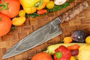 Product Description for Integral Damascus Chef Knife (7-1/2 in) with Big Leaf Maple