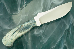 Handle scales are dyed and stabilized kudu horn set on the full tang with stainless steel pins. The material is taken from the inside of the kudu horn and has been polished -- combining a dramatic appearance with excellent durability. The contoured handle is extremely comfortable and provides an excellent grip.