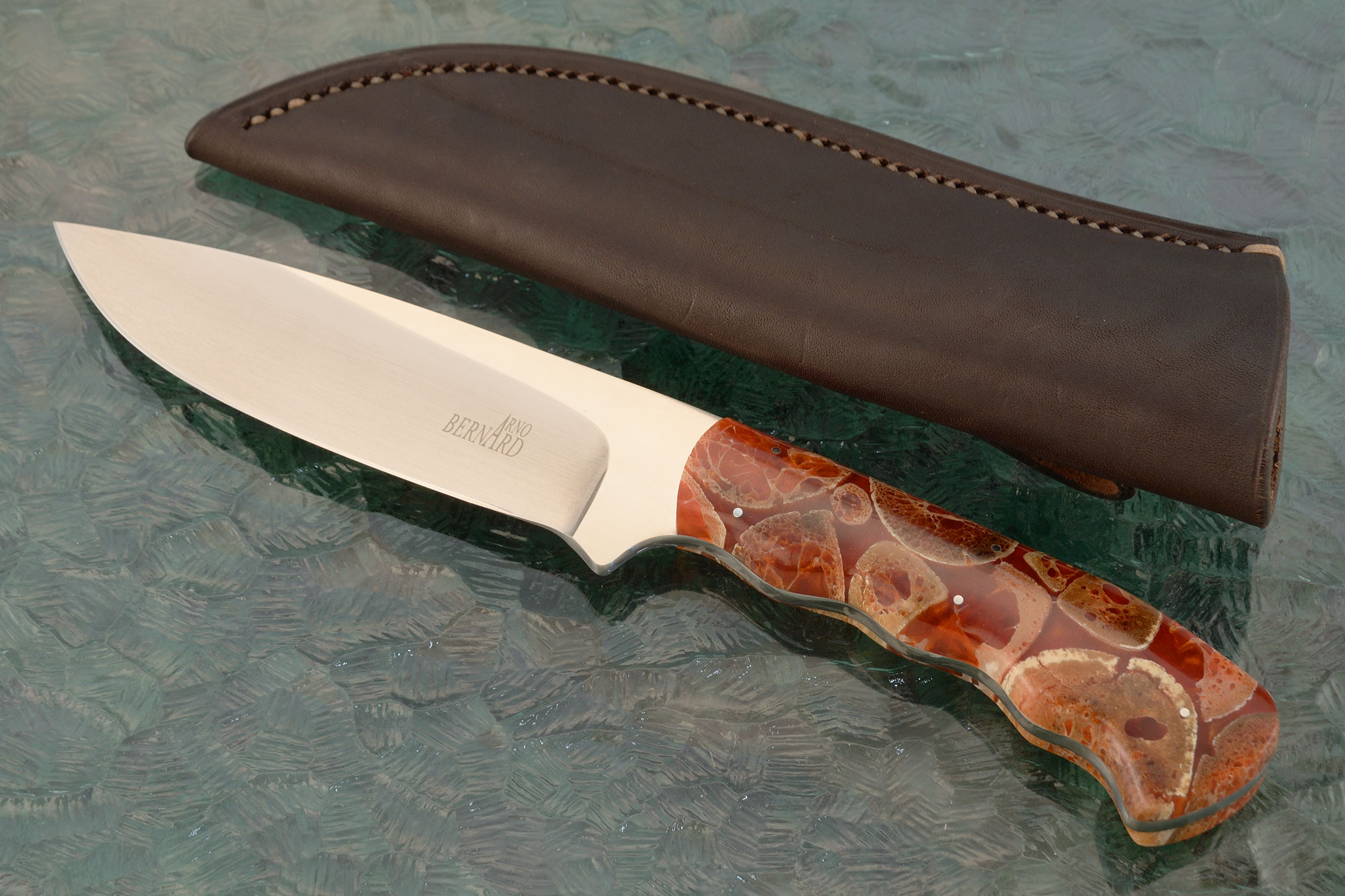 Description: Arno Bernard Sr. is a maker from South Africa and has been making knives for over 35 years. He has been a member of the Knifemakers Guild of Southern Africa (KGSA) for over 20 years. Living in South Africa has allowed him the luxury of using many different exotic handle materials -- some even collected himself.
