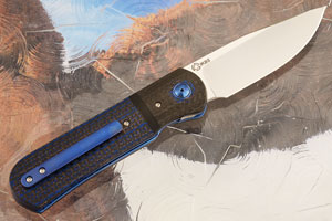 Handle: Blue lightning strike carbon fiber set on anodized titanium liners