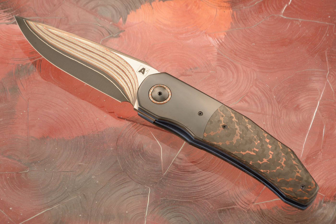 Handle: Copper snakeskin FatCarbon set on anodized titanium liners