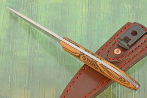This lightweight knife weighs in at 2 ounces making it a very easy knife to have at your side every day. The blade is 80CrV2 carbon steel. Mike's touchmark and JS stamp are on the left side of the blade.