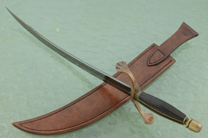 This Custom Naval Dirk shows Rucus's excellent skills as a bladesmith. The blade is hand forged 5160 carbon steel and features a gun blue finish. 5160 is an exceptional steel for hard use knives. It provides maximum toughness and resistance to breakage while maintaining good wear resistance.