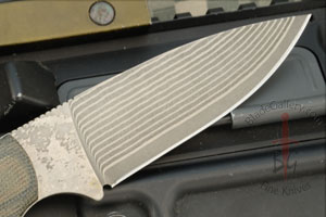 This exceptional Guardian 3.2 features a Super Gold II (SG2) powdered metallurgical (PM) steel combined with the beauty of linear damascus. A high performing Takefu SG2 PM stainless steel core is surrounded by thin layers of stainless damascus steel. The resulting cutting edge is tempered to Rc 62 - 64 (very hard!) for exceptional edge holding, but is easy to sharpen due to the small grain structure. The incredibly small crystalline size of this PM steel results in superior edge holding when compared to nearly any other stainless steel used in the knife industry. This blade features a full height flat grind.