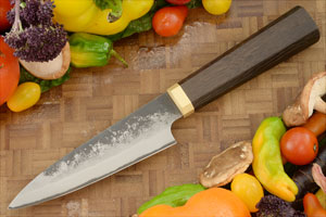 Product Description for San Mai Utility Knife (5-1/4 in.) with Oak and Brass (Aogami Super)