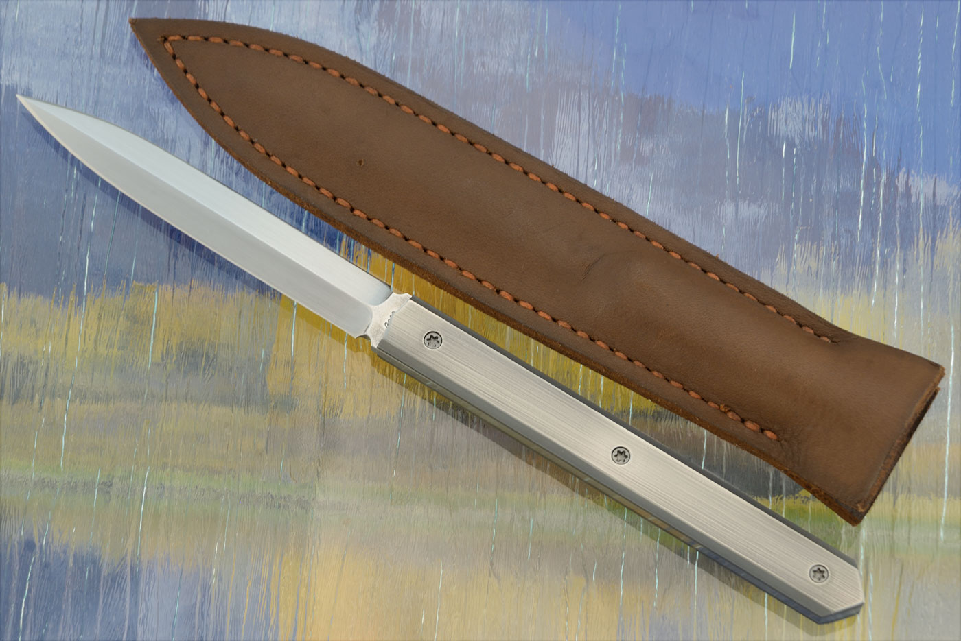 This compact dagger is designed to be carried in the pocket. The symmetrical dagger ground blade is hand ground from Bohler N690 stainless steel with a hand rubbed satin finish. N690 ensures a keen, long-lasting edge with good resistance to chipping. It is a great choice for high performance use knives.