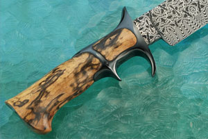 Product Description for Multi-Bar Mosaic Damascus Sub-Hilt Bowie with Spalted Maple