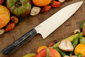 The chef’s knife is a multipurpose knife used for just about every cutting job in the kitchen. Whether chopping, slicing, dicing, or mincing, this will be your goto knife. There's plenty belly curve to enable rocking cuts, which enhances the knife's versatility. This chef’s knife is sure to be a kitchen favorite.
