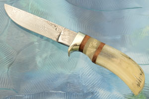 The blade was hand forged from Bill's own damascus combining 1084 and 15N20 carbon steel to ensure excellent edge holding and chip resistance. The blade is convex ground for a durable cutting edge. Bill's touchmark is engraved on the ricasso of the knife. The spine of the blade Is nicely rounded for comfort.