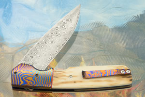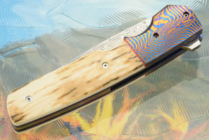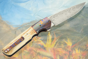 Damascus Model 56 Flipper with Timascus, and Mammoth Ivory (IKBS)