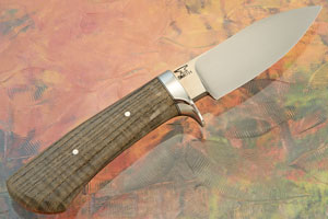 Stuart forged this drop point blade from 52100 carbon steel. This high performing steel is considered to be among the best steels (if not the very best) by many knifemakers and knife users. Makers such as Mastersmiths Bill Burke, Bob Kramer, and Ed Fowler have pioneered this long edge holding steel. The blade features a meticulous hand rubbed satin finish. Stuart's J.S. mark is on the left side of the blade and his touchmark is featured on the right side.