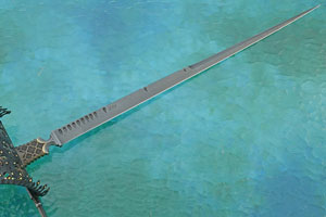 The blade is hand forged from Neel's own highly complex mosaic Damascus, combining carbon steels to ensure excellent edge holding and chip resistance. The pattern immediately grabs attention and draws you in for closer examination. The 18-1/2 inch blade is carved and fileworked. Neels' mark is engraved on the right side of the blade.
