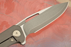A glass bead blasted grade 5 titanium frame ensures this mid-size folder will be light in the pocket, yet have tremendous strength and durability. Screws throughout were made in the Arno Bernard workshop and are grade 4 titanium. Ensuring rigid, yet light construction, the backspacer is grade 5 titanium.