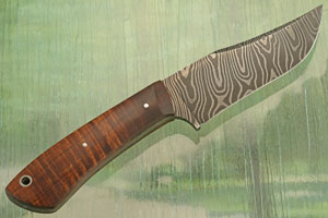 Product Description for Twist Damascus Clip Point Hunter with Curly Koa