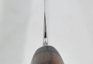 The blade is hand ground from AEB-L stainless steel. AEB-L is ultra high performance -- combining the convenience of stainless steel with the ability to take an acute edge and hold it (a characteristic usually only found in carbon steels). AEB-L steel was designed for razors, which need corrosion resistance, high hardness, and very acute edges. Once you try a knife that is made with AEB-L, you'll immediately understand why it is coveted by knife enthusiasts, knifemakers, and professional chefs. The resulting blade has an extremely keen, long-lasting edge. The spine and choil are nicely rounded for comfort. The blade features a high performance serration for effortless slicing.