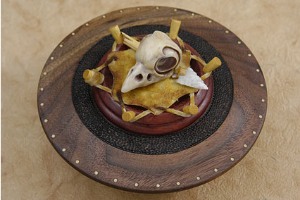 Description: This art basket features a carved owl skull. In Native American folklore, the owl is the harbinger of death and hearing it call your name is the summons to the afterlife.