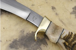 The blade was forged from 52100E steel. This is a high carbon, high chrome steel in a very pure form and results in a knife steel that is as good as it gets. The blade is forged at low temperature. It is subjected to a minimum of 30 low temp thermal cycles, which requires a lot of hammer work. The blade was carefully hardened three times using a differential hardening technique developed by Ed Fowler for this steel. Triple tempered to push the steel to the limit, this knife is easy to sharpen, yet holds an exceptional edge.
