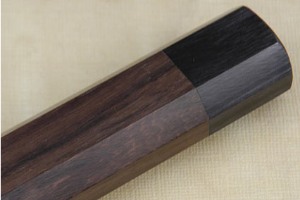 Description: These replacement handles were meticulously formed from macassar ebony and pakka wood using traditional methods. One of the benefits of traditional Japanese chef's knives is that the handle can be easily replaced. Whether a larger handle is desired or the old handle has worn out, the blade (which will often be passed down through generations) will often out live the original handle.