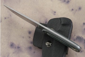 The 1080 carbon steel blade has been edge quenched for a keen, long lasting edge and a softer, supportive spine. The resulting knife will be very sharp while also being very durable. The spine has been rounded for comfort. The G10 handle will hold up exceptionally well out in the field or in an executive's pocket. Accompanied by a Kydex sheath. Excellent fit and finish throughout.