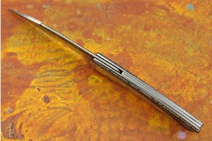 Description: Emil Bucharsky began this outstanding folder by forging the damascus 1095 and pure nickel. The high contrast ladder pattern immediately grabs attention -- combining midnight gray tones with bright silver lines that highlight the integrated stainless steel. The damascus is combined with stainless steel into elegant flowing lines reminiscent of knives by Wolfgang Loerchner. The blade has silky smooth action and is well centered. The blade combines a modified wharncliffe shape with a harpoon tip. This is one of those knives that you won't be able to put down!