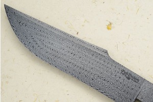 Sculpted scales of desert ironwood form the handle. A swell in the palm area and a flare at the end results in a comfortable and safe grip in hand. Six stainless steel pins set the scales in place. The fit between scales and tang is exceptional!