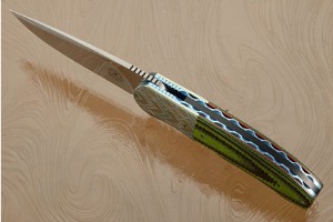 Handle: Stacked toxic green G-10 and carbon fiber