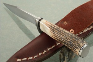 A satin finished 416 stainless steel guard and pommel surround the premium stag handle. Black fiber spacers assist the handle to adjust to temperature and humidity changes. A fileworked copper spacer brings in warm tones. The natural texture of the stag provides a sure, comfortable grip. The pommel is carved to nicely match the natural texture of the stag.