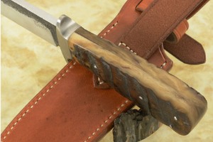 This knife is accompanied by a hand stitched, tooled leather sheath made by Gordon Kenley.