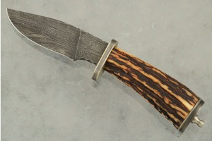 The oval guard and pommel are formed from damascus and nickel silver. The stag handle has a perfect natural texture for a secure, comfortable grip.