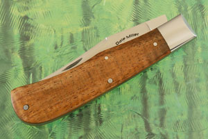 Description: Dale Miller's attention to detail shines through this elegant gent's folder. The slip joint design, premium ELMAX stainless steel blade, and presentation grade koa wood make this a tremendous old school folder with modern performance. The Back Pocket design was originally developed by Tony Bose. He built it to be a perfect size to carry in your back pocket, set next to your wallet.